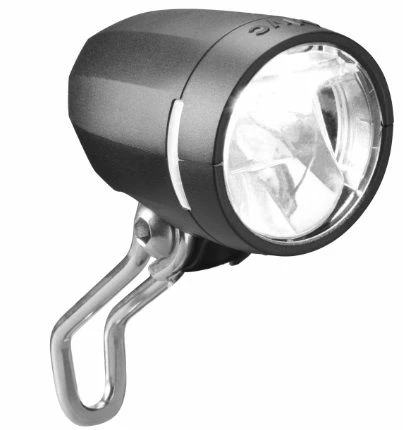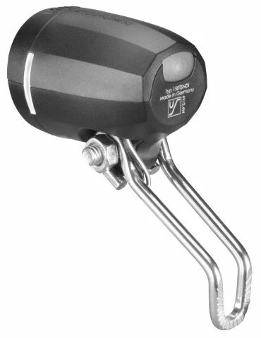 The Myc E electric bike headlight is a compact front light from the German company Busch & Müller. The LED-IQ2 technology provides an illuminance of 50 lux and offers excellent and even road illumination. In addition, a lateral light emission ensures more visibility and safety in road traffic. The headlight is connected to the e-bike battery and switched on/off via the control unit. There is no additional switch on the headlight. Furthermore, the headlight has a connection option for the rear light. The headlight is compatible with all e-bike drives with a DC voltage of 6 to 42 volts.