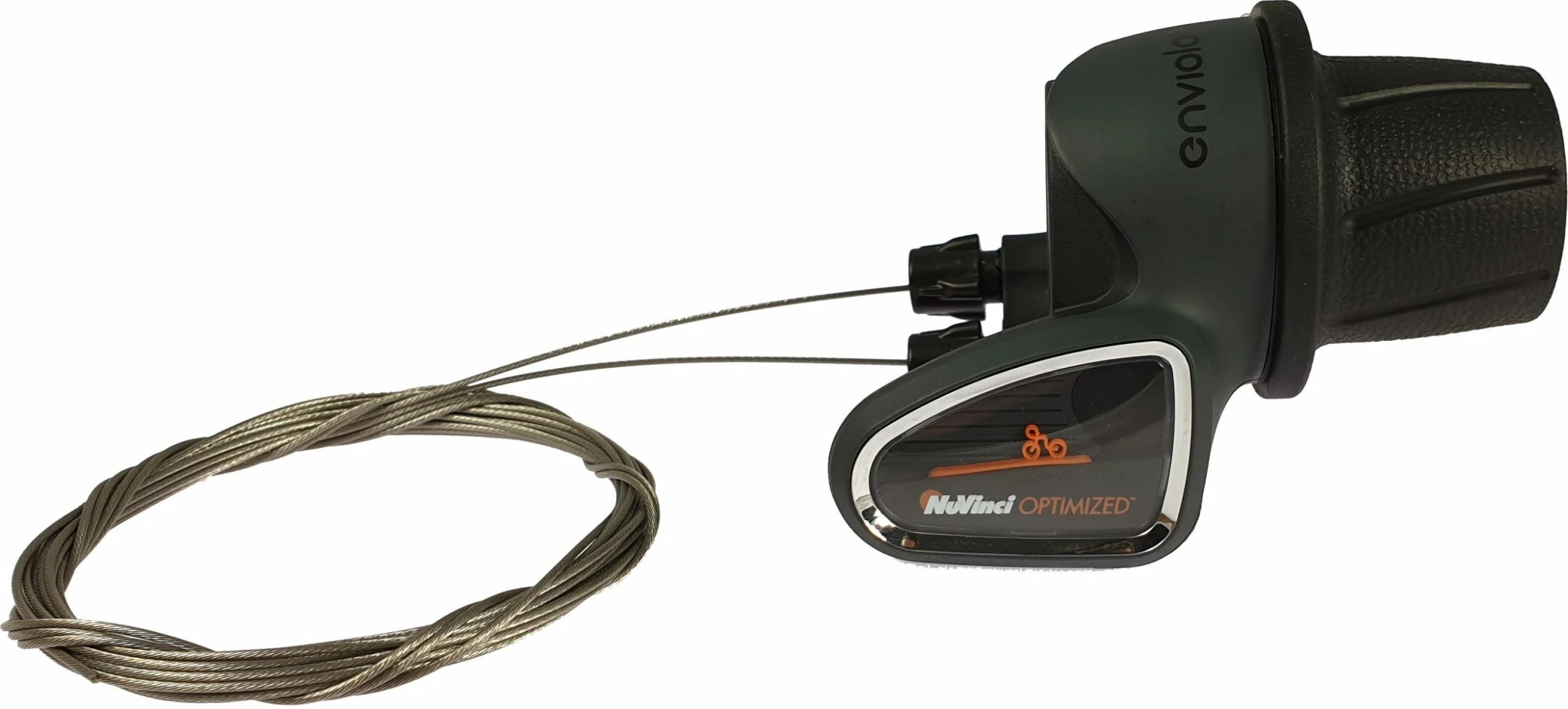 With the original Enviolo twist shifter TR you operate your stepless NuVinci / Enviolo hub gears. The shift lever is compatible with all hubs from the house Enviolo – formerly NuVinci – and can be easily replaced in case of a defect. About the visual gear indicator, you also always have an overview of which gear ratio you are currently on the road. The twist grip shifter can be used with all Enviolo manual switching interface. Thereby, the rotary shifter works with ”One Turn” interfaces as well as with ”Multi Turn” shifting units. For the use of the circuit on cargo bikes, there is the twist grip also with a 3300mm long Bowden cable.