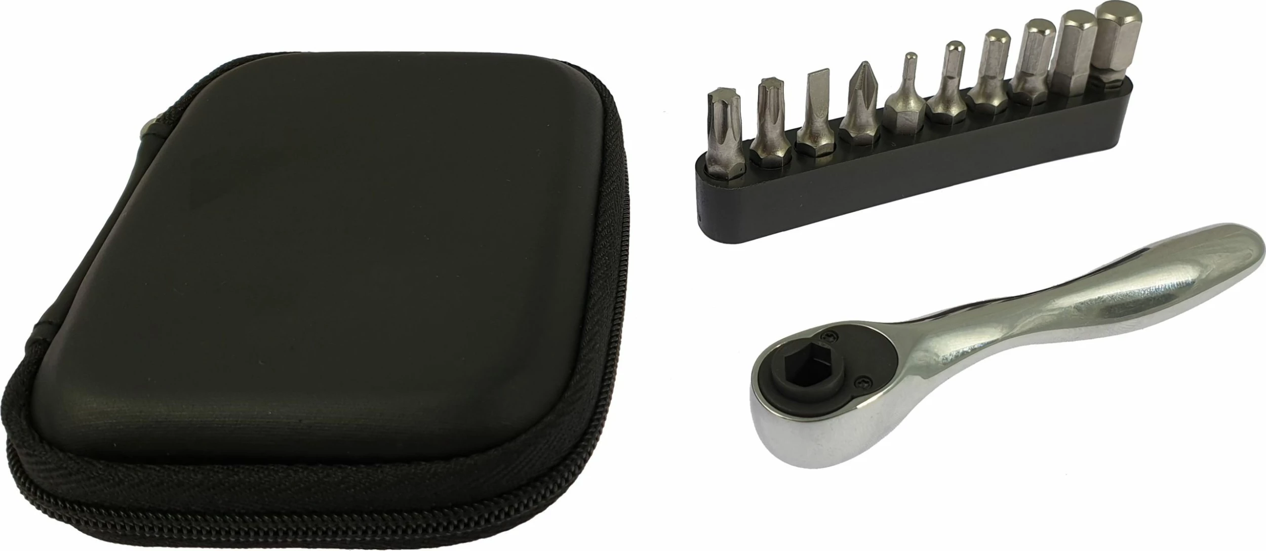 The KTM Bit tool incl. tool bag comes with a mini ratchet and all important bits. This means you are equipped for minor adjustments during your e-bike tour. Since the KTM Bit tool incl. tool bag is very compact, it fits in your breast pocket or backpack and is therefore a reliable partner on your rides.