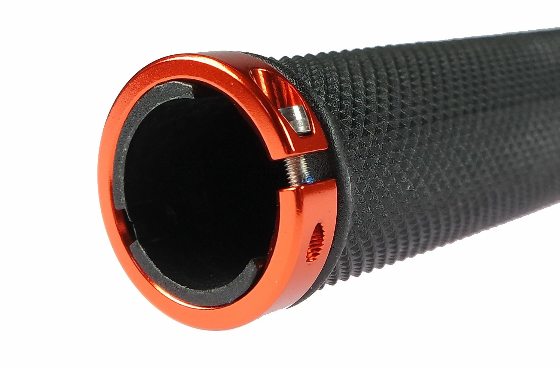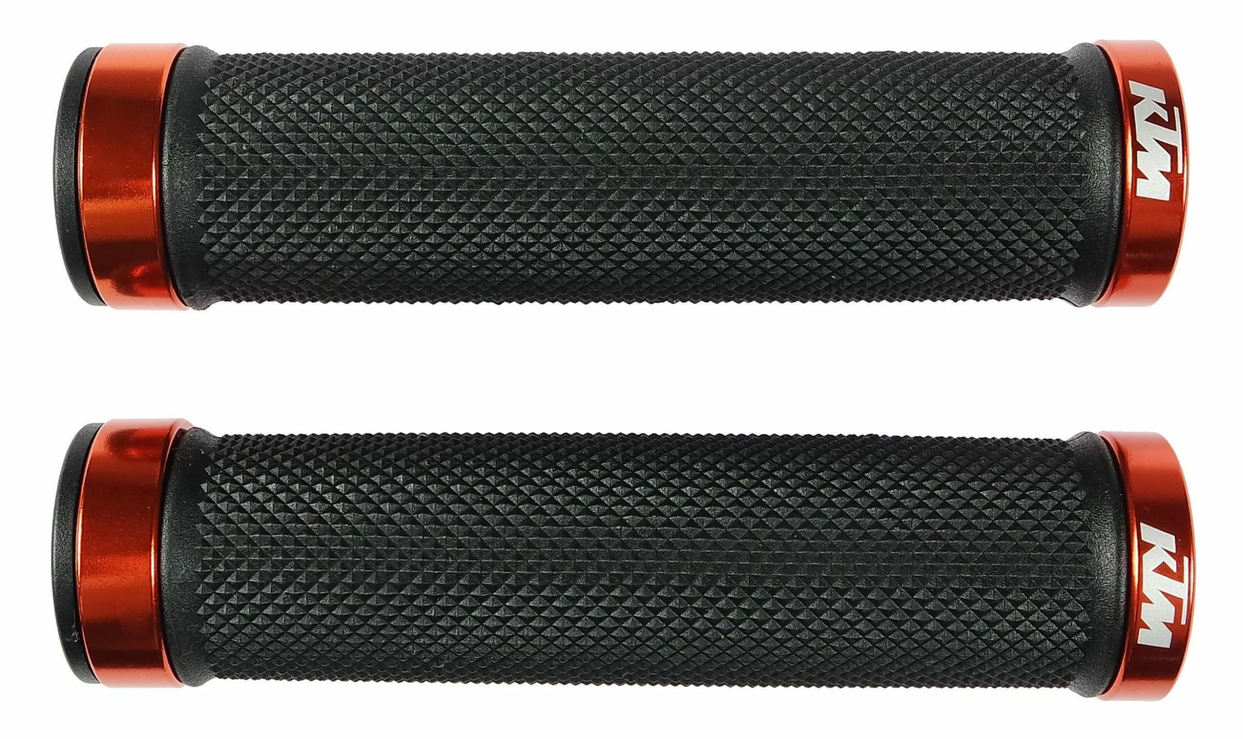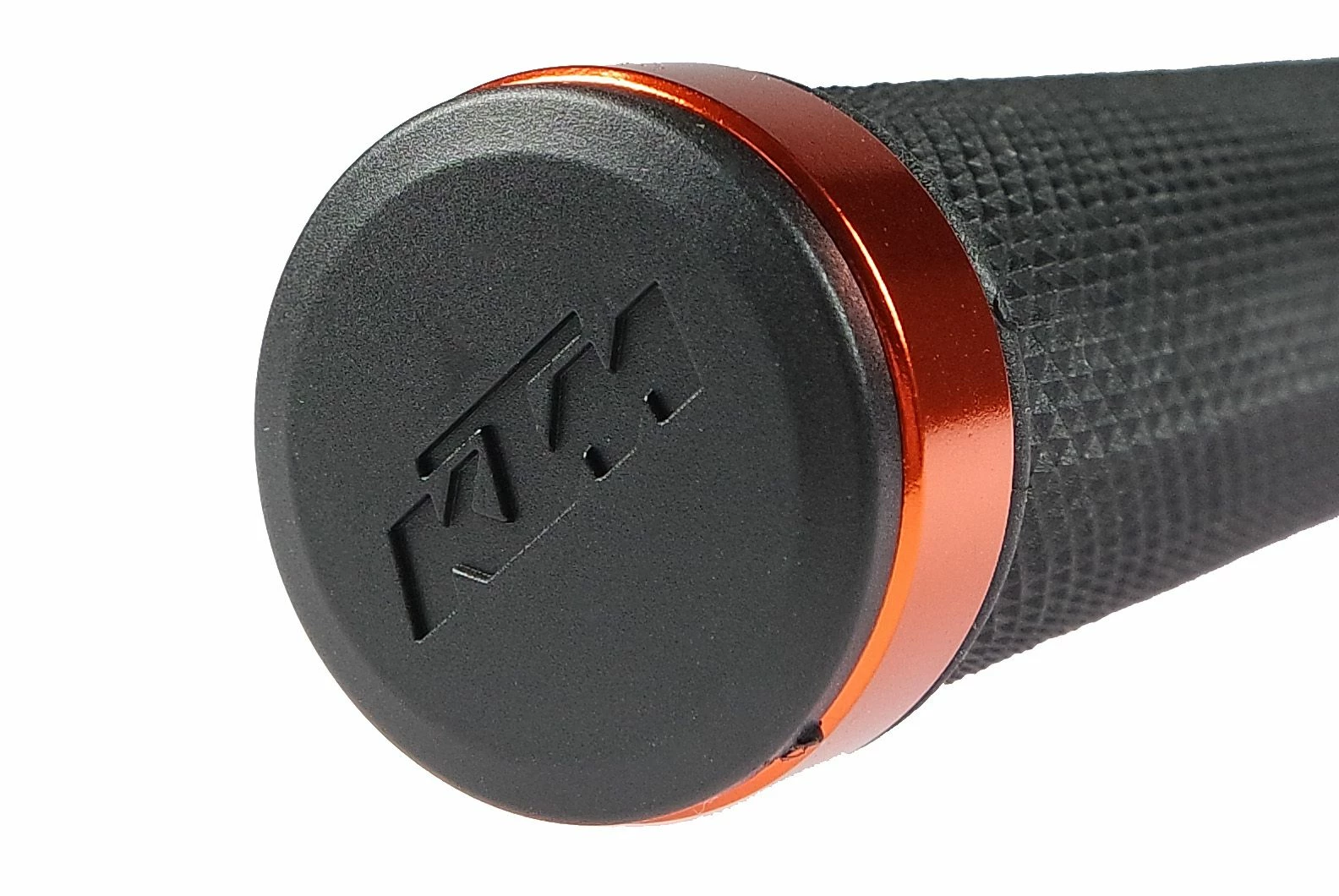 2 clamping rings incl. screws allow the secure fixing of the grips to the handlebars. The logo print can be found on the inner aluminium clip of the KTM-DIAMOND CLAMP handle as well as on the end caps.