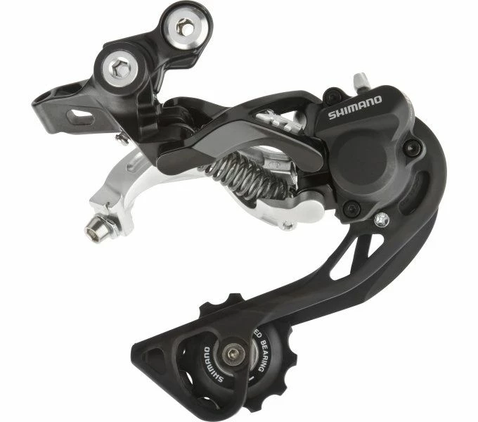 It is designed for use on MTBs with 1×10, 2×10 or 3×10-speed drivetrains and thus offers a wide range of ratios. It is characterised by fast and precise shifting processes. An 11-tooth idler and a damper counteract drive noise and provide a good portion of comfort. The SHADOW RD technology keeps the chain tension high even in rough terrain.