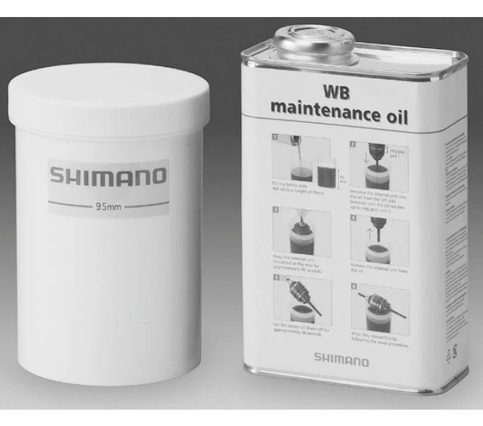 The SHIMANO maintenance set for 5-, 7- and 8-speed gear hubs consists of 1,000 ml oil in a canister and a dip bath. The continuous oil change guarantees a long service life.