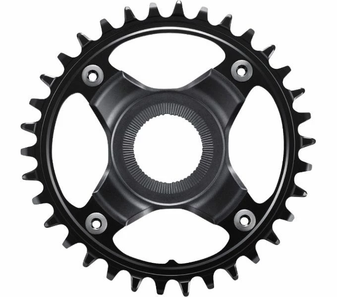 The SHIMANO SM-CRE80-12 steel chainring is optimised for use on e-bikes with 1×12-speed drives and powerful motors. The chain line is 53 mm. The Dynamic Chain Engagement + technology ensures a secure chain guide even in rough terrain. It is available with 34, 36 and 38 teeth.