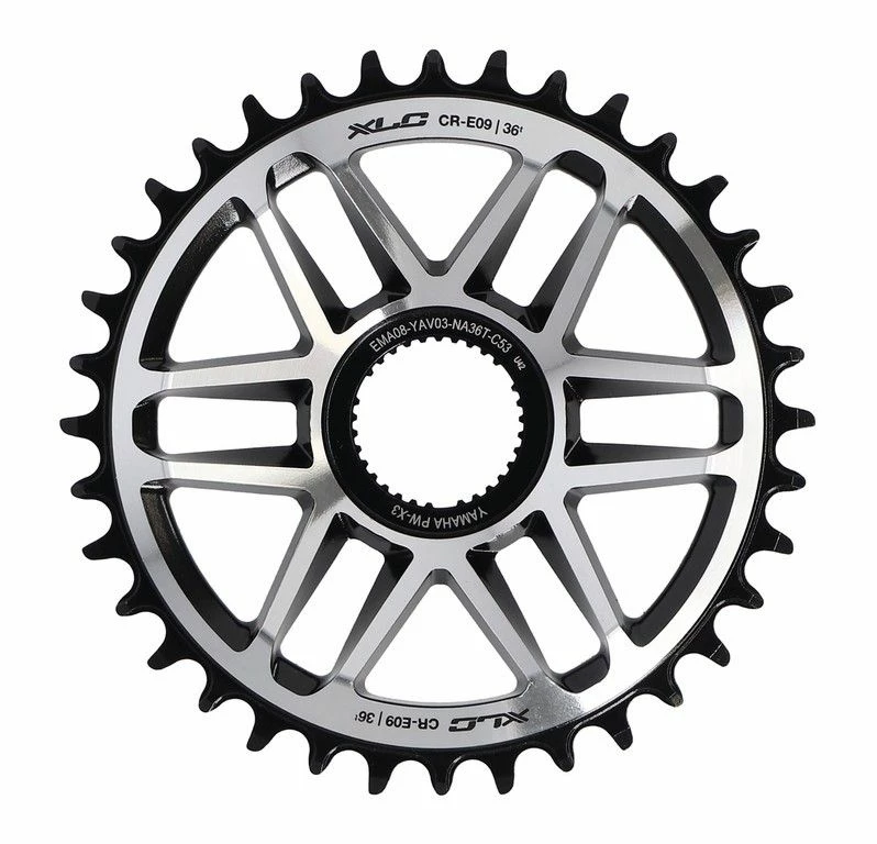 The XLC eBike chainring CR-E09 is a CNC-milled chainring for e-bikes with Yamaha PW-X3 motor. The chainring is made of high-quality aluminium and alloyed, is mounted by means of direct mount and is available in 36 or 38 teeth.